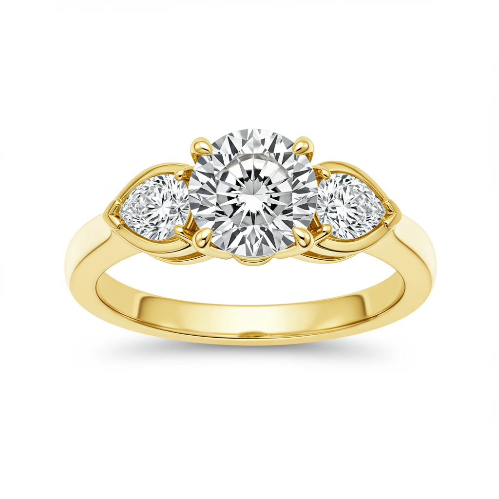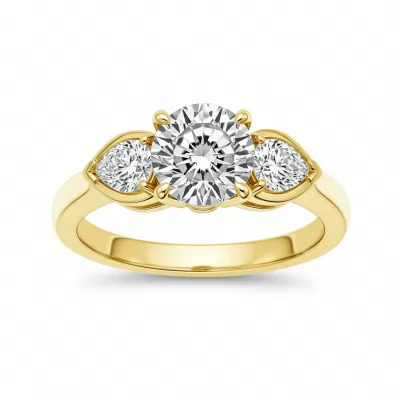 Classic features a thin precious metal band that gently tapers towards a pear-shaped diamond on each side of the center stone