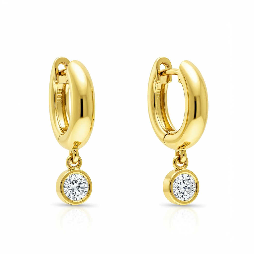 lustrous precious metal with diamond hanging. Perfect for everyday wear, Secured with hinged latch backs