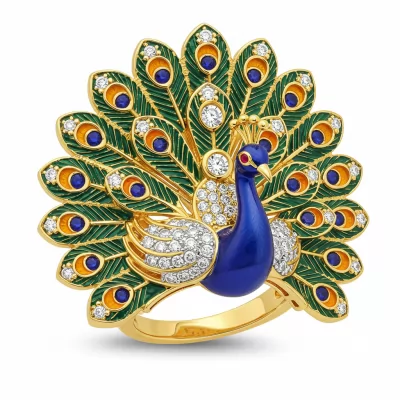 Set in 22Kt Yellow Gold (Net Weight 9.17 Gm) Peacock Yellow Gold Designer Ring For Women, Famina Gold Palace