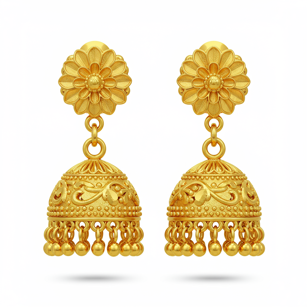 Bridal Heavy Gold Jhumka Design For your Special look on your Wedding Ceremonies. Buy 22 Karat Gold Jhumka Designs
