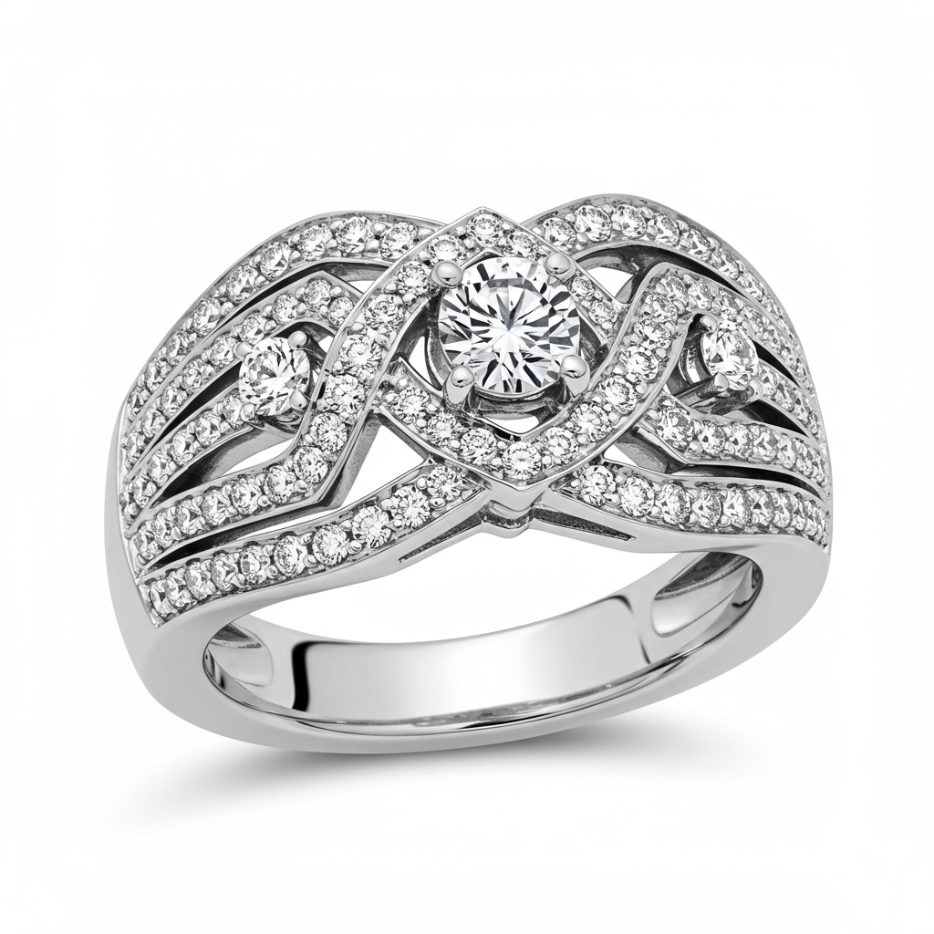 This exquisite 18KT white gold cocktail ring is a masterpiece of modern luxury, designed to capture maximum light and attention. It features a striking formation of high-clarity diamonds, utilizing both solitaire and micro-pave settings to create an illusion of seamless, continuous brilliance. The high polish finish and structural symmetry ensure spectacular reflection from every angle. Designed for the discerning individual, this ring serves as a captivating statement piece for any sophisticated event.