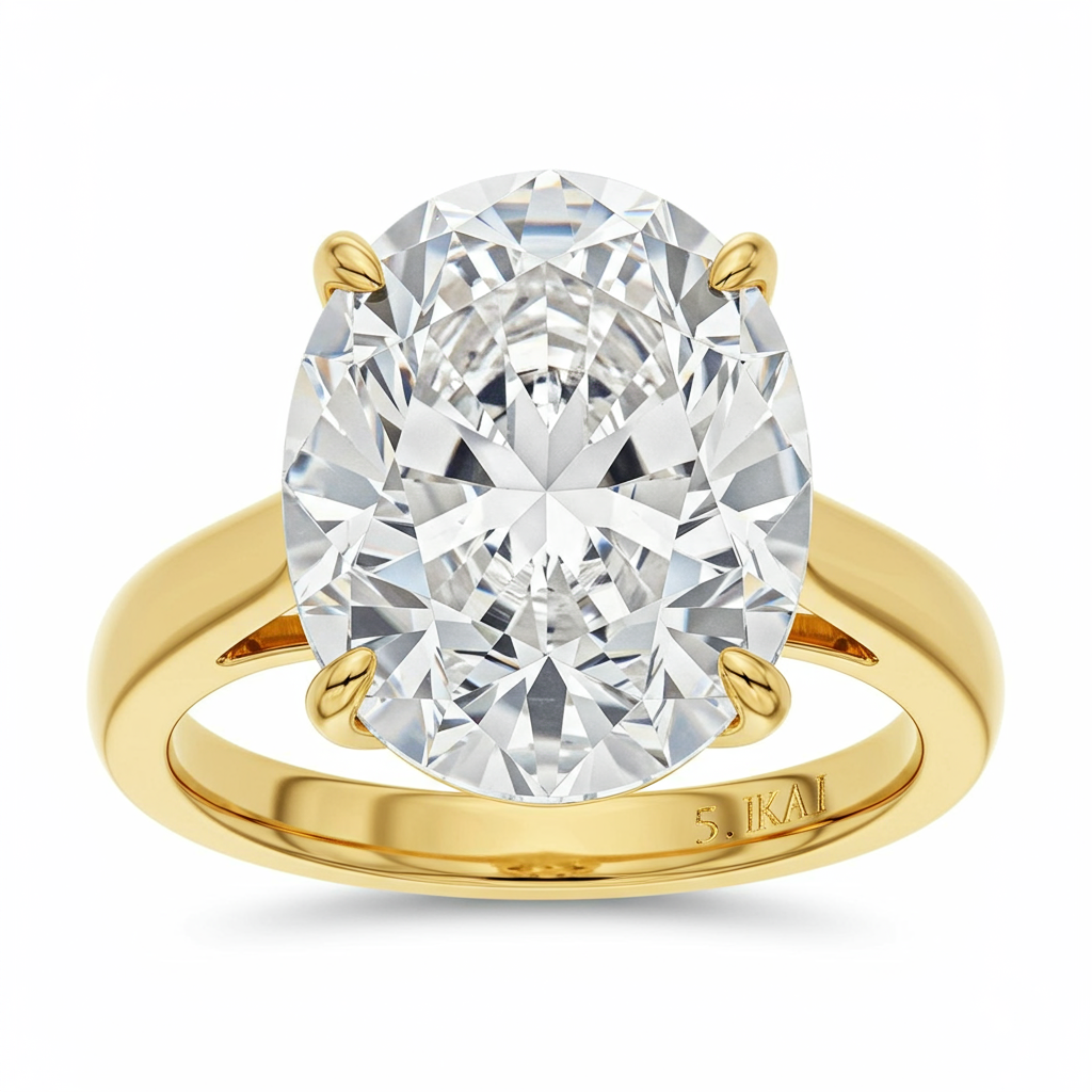 The 'hailey bieber ring' captures timeless elegance with its stunning single oval-cut diamond centerpiece. Set meticulously in rich 18KT yellow gold, the minimalist setting allows maximum light exposure, enhancing the diamond's brilliance. This design embodies modern sophistication and enduring commitment, making it the perfect symbol of a lifelong promise. Its delicate band contrasts beautifully with the commanding presence of the large stone.