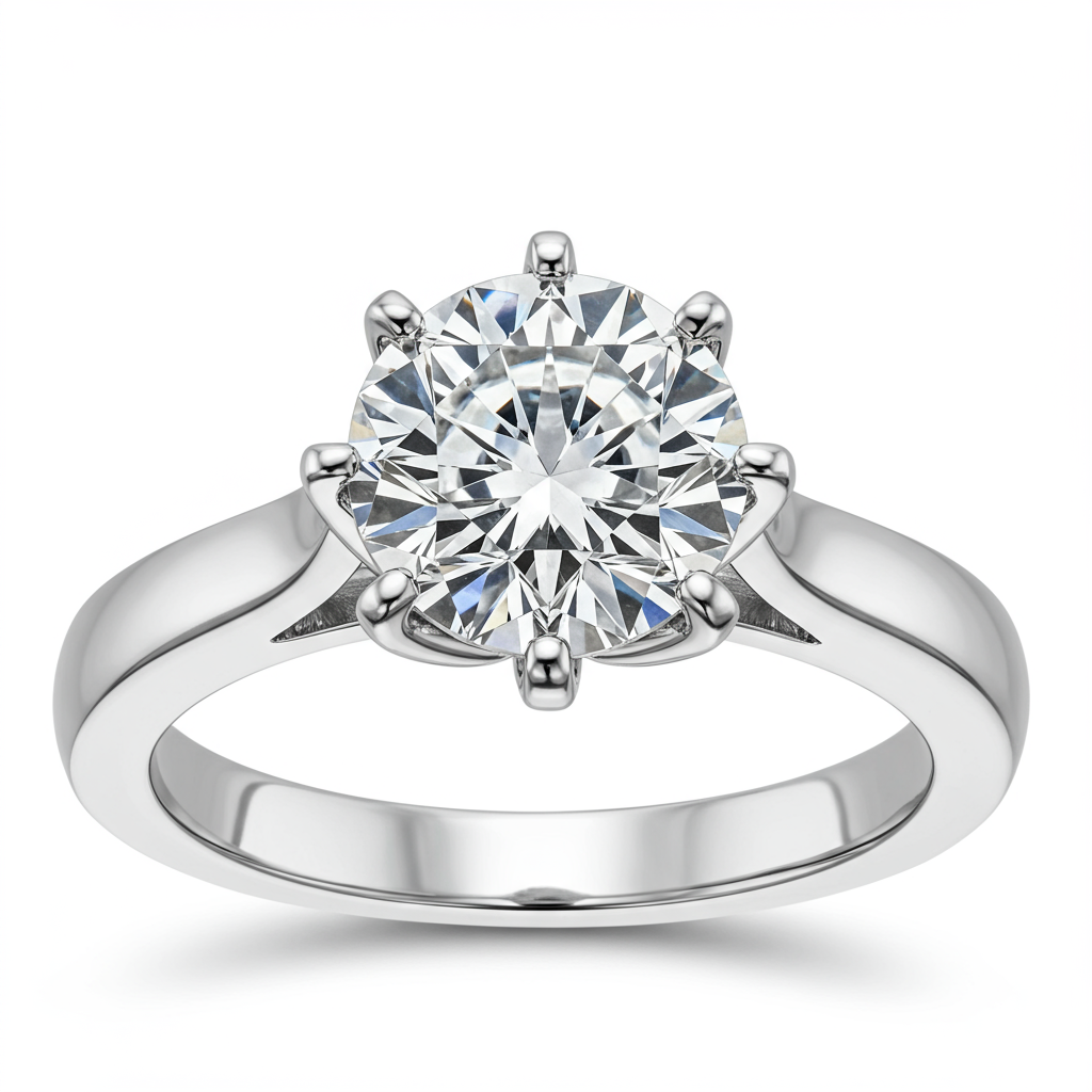 This exceptional 4 carat diamond solitaire ring is the ultimate expression of commitment and luxury. Meticulously crafted in gleaming 18KT white gold, the centerpiece is a magnificent Round Brilliant diamond boasting VVS clarity and a near-colorless G grade. The precision six-prong setting elevates the stone, maximizing light performance and fire from every angle. It is a truly timeless masterpiece designed for maximum brilliance and lasting impact.