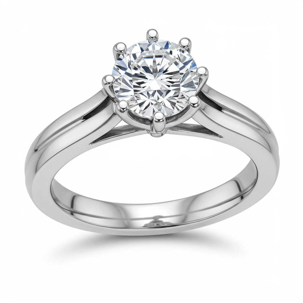 This breathtaking solitaire engagement ring showcases a magnificent 3-carat round brilliant diamond, set impeccably in refined 18KT white gold. The classic six-prong setting elevates the enormous center stone, maximizing light return and ensuring unparalleled sparkle from every angle. Engineered for eternal beauty, the sleek, polished band provides a sophisticated contrast to the dazzling VVS clarity diamond. This timeless design is the ultimate expression of commitment and luxury, symbolizing enduring love and exceptional taste.