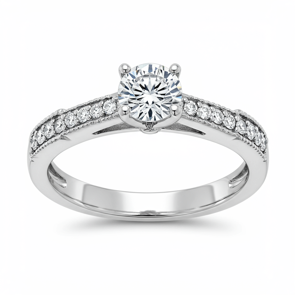 This exquisite 18KT white gold promise ring symbolizes enduring commitment and future devotion. Featuring a brilliant 0.50ct solitaire center diamond, its design is both timeless and subtly elegant. Delicate accent diamonds enhance the shoulder setting, providing unparalleled sparkle and depth. It serves as a beautiful precursor to an engagement or a powerful statement of serious intent, crafted for lasting beauty.