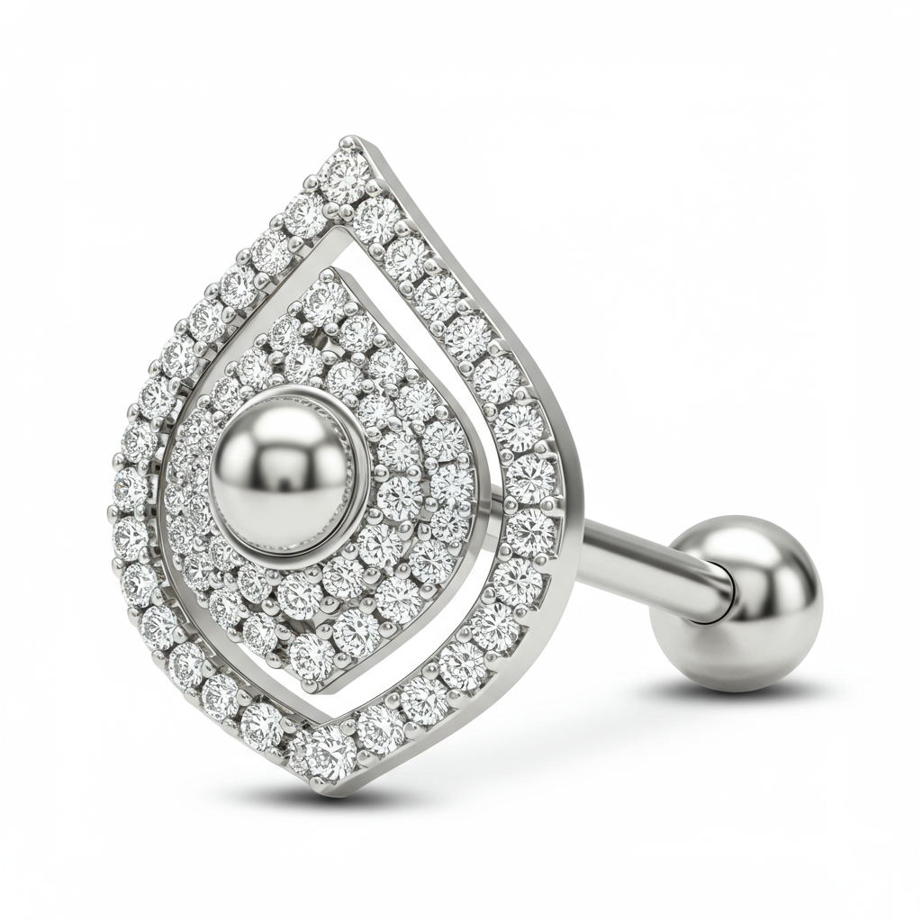 The ultimate expression of intimate luxury, this stunning nipple ring is crafted in solid 18KT white gold. It features a meticulously set micro-pave shield design that captures light with unparalleled brilliance. Centered around a secure, comfortable barbell, the piece is fully encrusted with VVS clarity diamonds. This exquisite adornment merges modern sensuality with timeless fine jewelry craftsmanship, perfect for the discerning wearer.