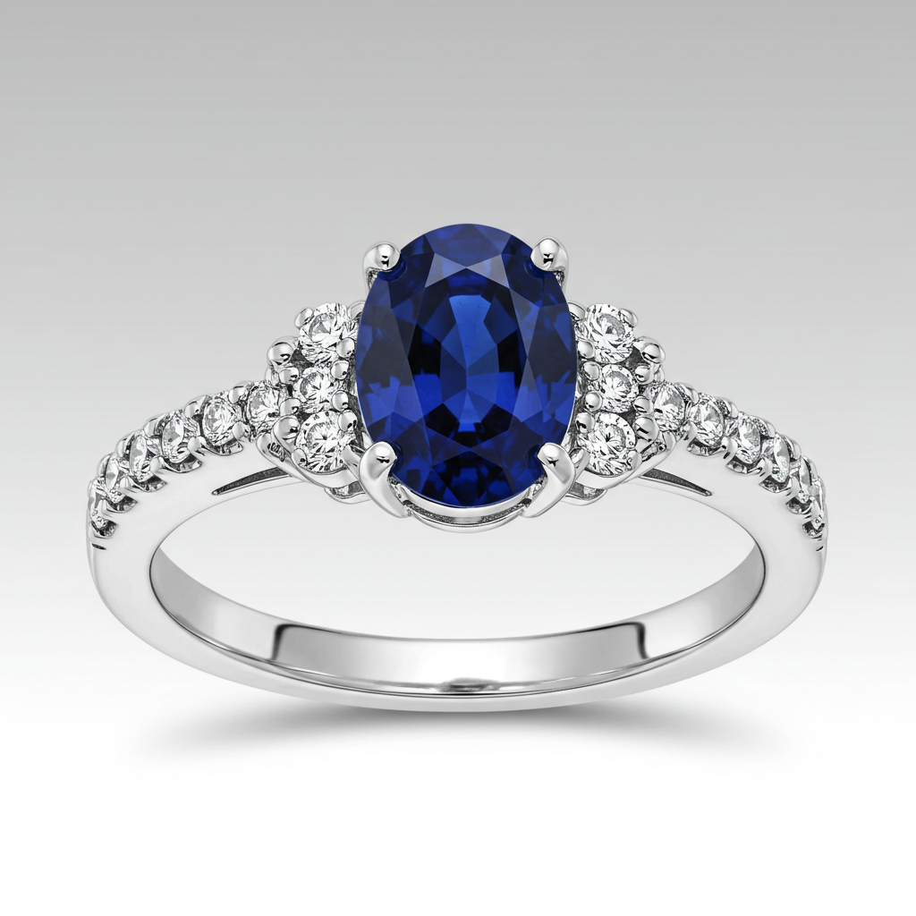 This exquisite engagement ring harmonizes timeless elegance with vibrant color, centered around a magnificent natural blue sapphire. Crafted in lustrous 18KT white gold, the delicate setting elevates the main stone, allowing maximum light exposure for unparalleled brilliance. The shoulder features meticulously set VVS diamonds that cascade down the band, providing a luxurious sparkle contrast. It is a perfect symbol of enduring love, designed for the modern romantic who cherishes color and sophistication.