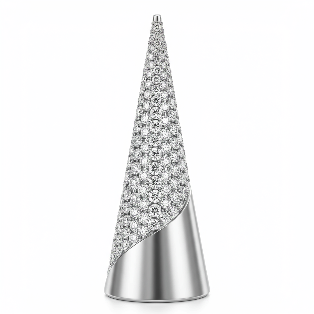 The 'ring stand' is an exquisite piece of functional artistry designed to cradle your most cherished rings. Crafted from solid 18KT white gold, its sleek, architectural silhouette is accented by precisely set pave diamonds along the elevated column. This display transcends typical storage, transforming your vanity into a high-end showcase for your diamond pieces. Offering both secure storage and dramatic presentation, this stand is essential for the discerning collector of fine jewelry.