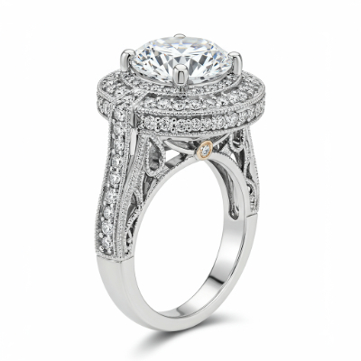An opulent interpretation of the iconic aesthetic, this statement ring captures the essence of rebellious luxury. Crafted in radiant 18KT white gold, the design features a spectacular high-clarity center diamond, evoking immediate attention. Surrounding pavé diamonds provide breathtaking brilliance and dimension to the sophisticated silhouette. This ring is a powerful emblem of high fashion and unparalleled craftsmanship, perfect for marking a momentous occasion.