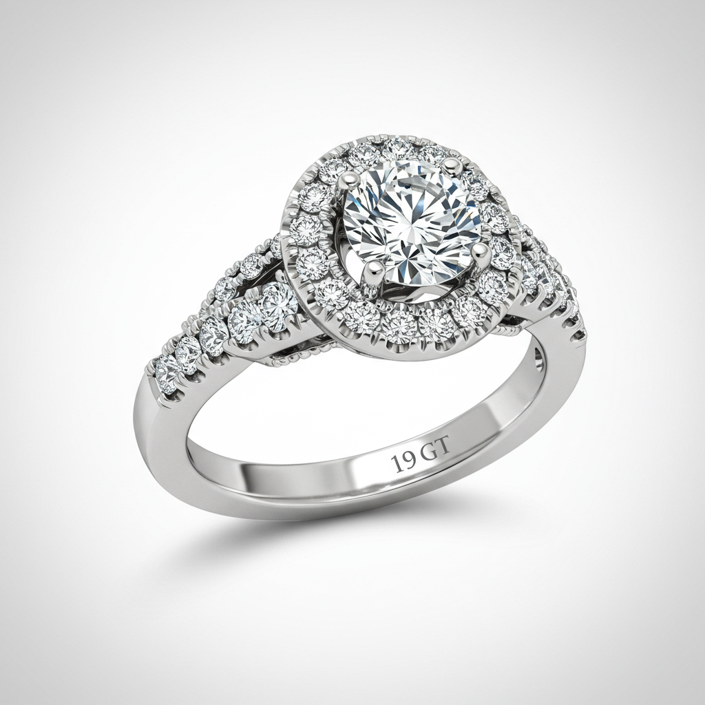 This exquisite halo engagement ring captures timeless elegance through modern design. A stunning 1.0 carat round brilliant center stone is encircled by a delicate micro-pave halo, maximizing brilliance and perceived size. Crafted in luxurious 18KT white gold, the slender band is also adorned with carefully set accent diamonds. This piece represents a promise of everlasting love, designed for breathtaking impact and superb comfort.