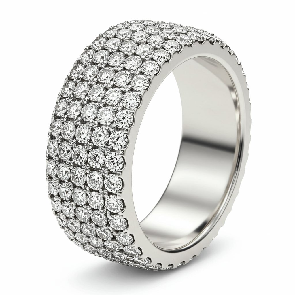 The JewelGravity diamond napkin ring transforms any dining setting into an event of unparalleled luxury. Crafted in substantial 18KT white gold, this piece features a seamless surface entirely paved with 3.50 carats of VVS round brilliant diamonds. Its architectural form reflects light brilliantly, offering sophisticated sparkle that elevates fine linens. This opulent accessory is designed for the discerning host who values impeccable craftsmanship and timeless elegance, making every meal a celebration.