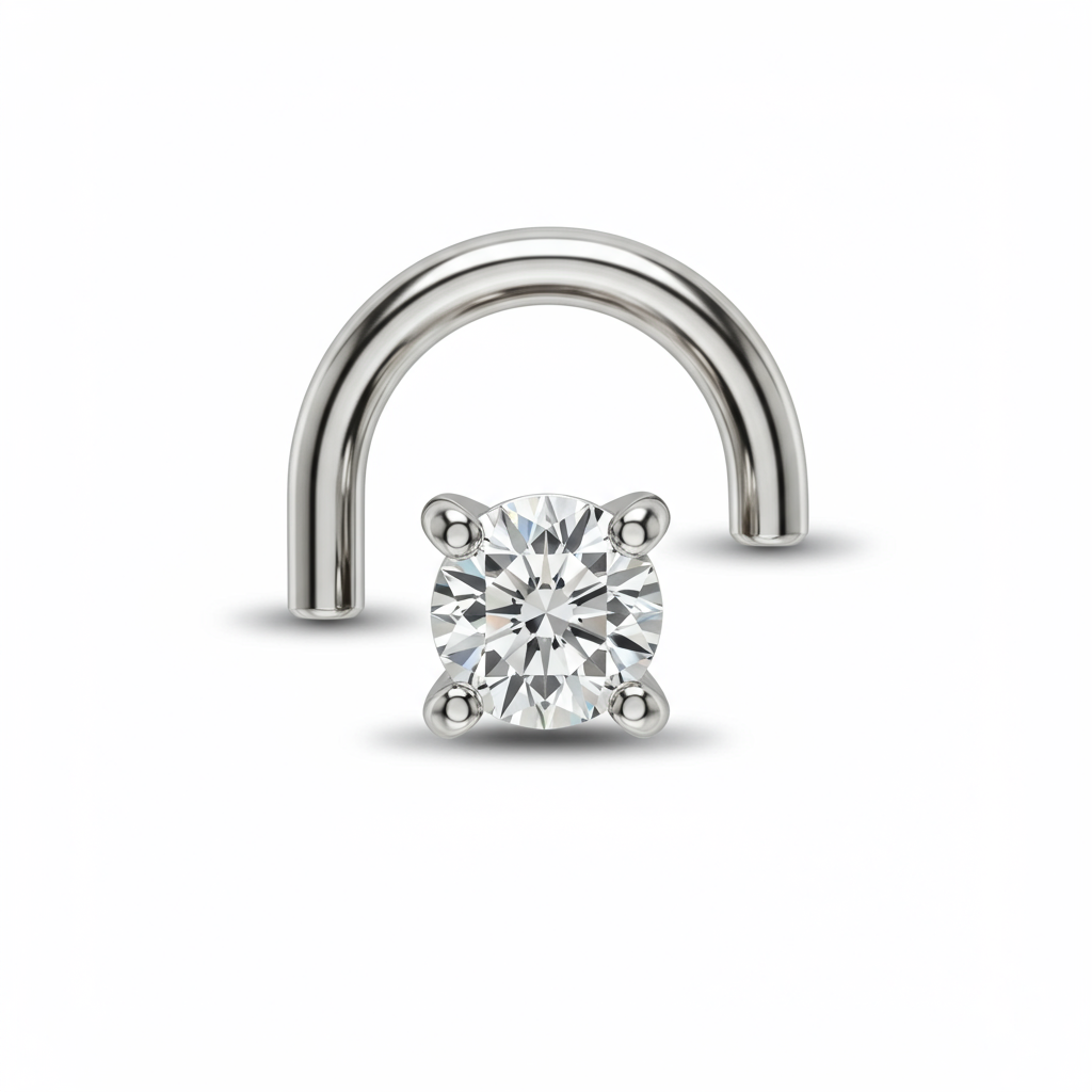 This exquisite nose ring is crafted from shimmering 18KT white gold, designed for sophisticated subtlety and timeless elegance. It features a single, brilliant round diamond meticulously set to capture maximum light reflection. The VVS clarity ensures an unparalleled sparkle, making it perfect for daily wear or elevated occasions. Its secure stud backing offers comfortable, long-lasting wear, combining luxury with practicality.