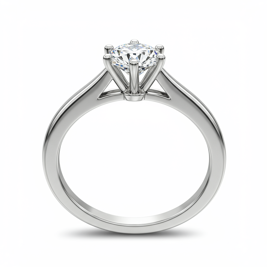 The Sol Ring embodies timeless elegance, featuring a magnificent 1-carat center diamond secured within a classic six-prong mounting. Crafted meticulously in lustrous 18KT white gold, this ring highlights the exceptional brilliance of the stone through its minimalist design. The highly polished band provides a comfortable fit while drawing all attention to the intense sparkle of the VVS diamond. This enduring classic serves as the ultimate declaration of commitment and sophistication.
