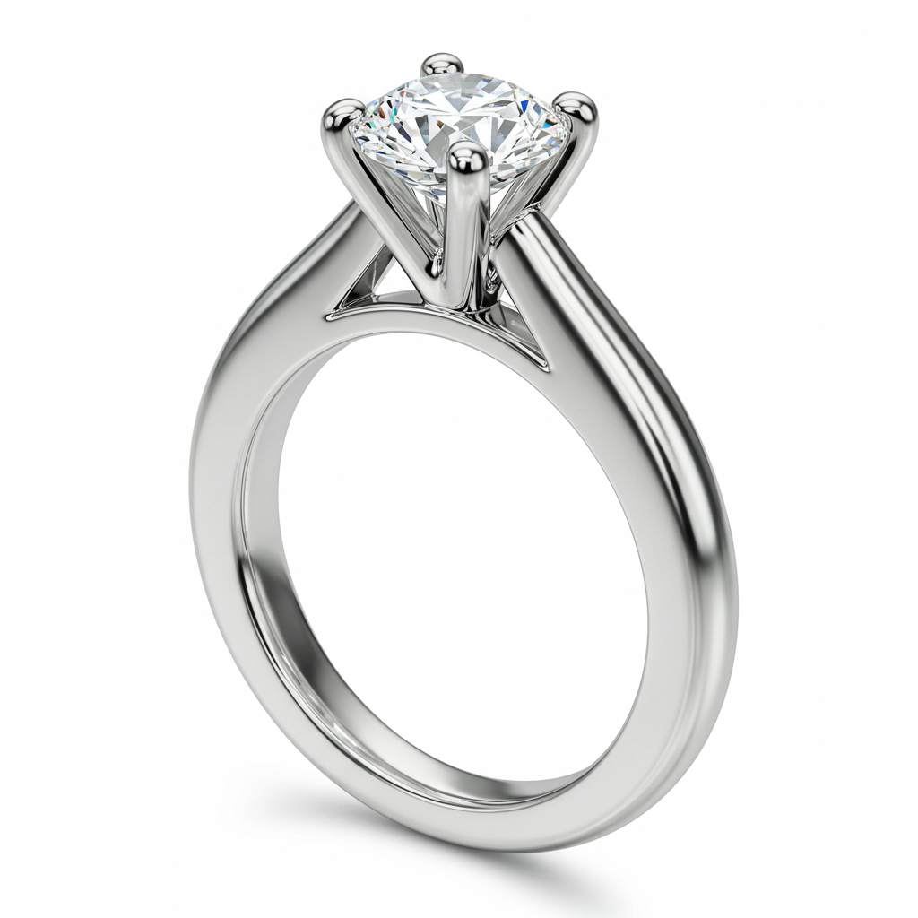 This exquisite solitaire engagement ring epitomizes timeless elegance and modern craftsmanship. Crafted in luminous 18K white gold, the sleek band perfectly elevates a magnificent centerpiece diamond. The secure four-prong setting maximizes light exposure, ensuring breathtaking brilliance from every angle. This piece is a profound symbol of commitment, designed for lasting beauty and enduring quality. Its classic design ensures it pairs beautifully with any wedding band.