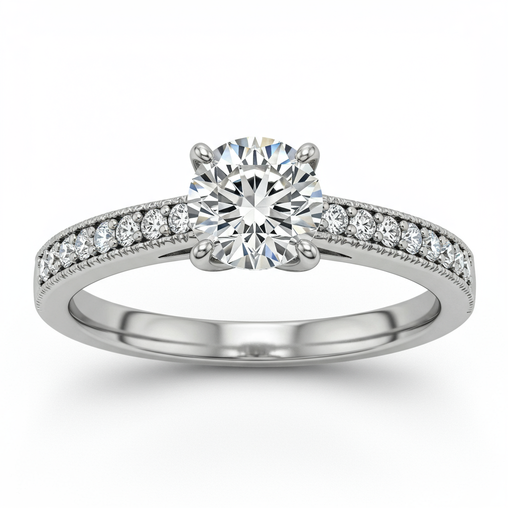 The 2ct Diamond Solitaire Ring epitomizes timeless sophistication and brilliant design. Featuring a magnificent 1.70 carat center diamond, held securely in a refined 18KT white gold setting, this piece is engineered for maximum sparkle. The delicate band is accented with precise micro-pave diamonds, adding an ethereal halo of light. This ring is a testament to enduring love and exquisite craftsmanship, designed to become a treasured heirloom.