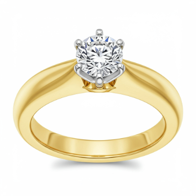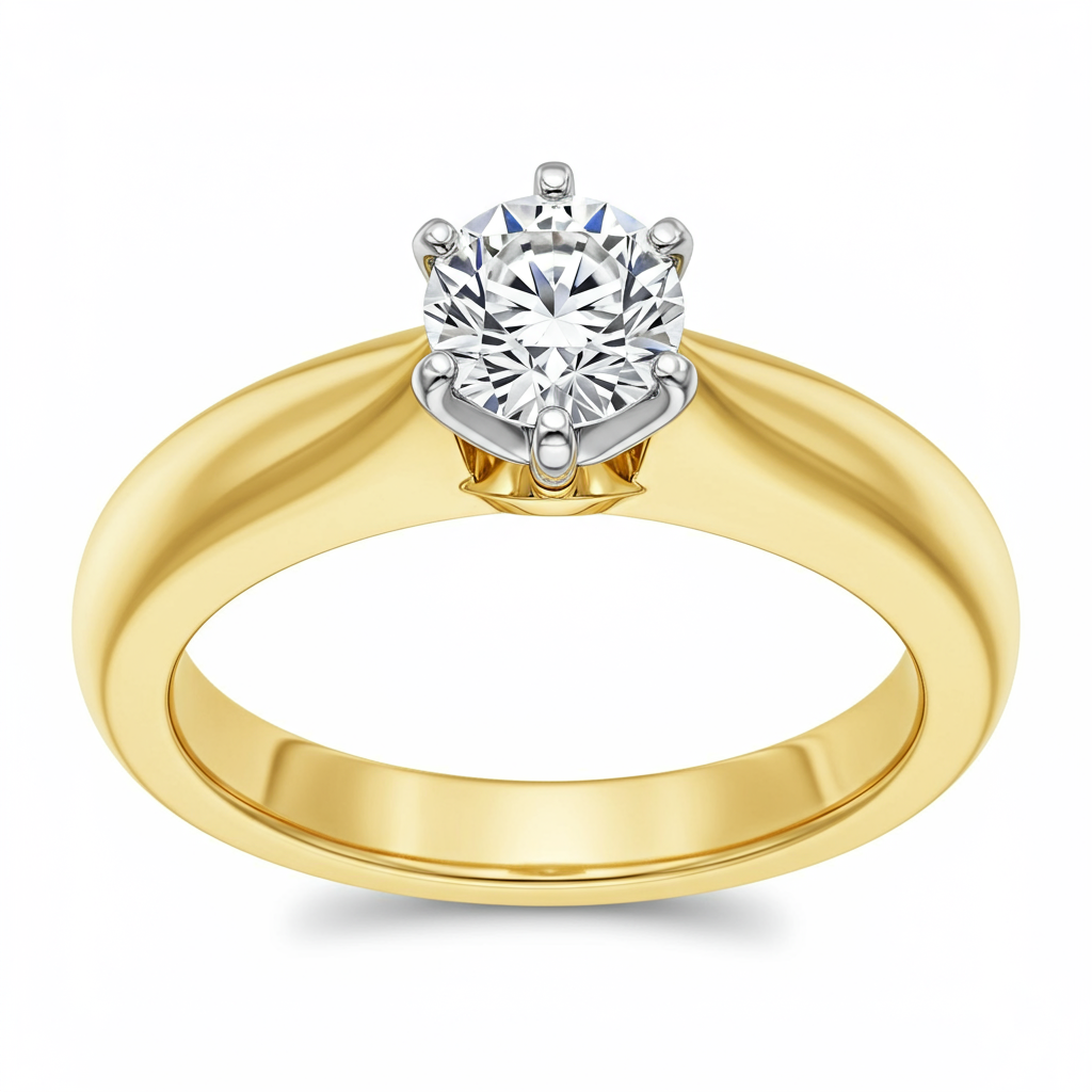 The 'gold ring gold' is an epitome of classic elegance, meticulously crafted in lustrous 18KT yellow gold. This timeless solitaire design features a single, brilliant round diamond held securely in a sophisticated six-prong setting. The substantial domed band provides a luxurious heft and comfortable fit, symbolizing enduring commitment. This piece serves as a statement of understated luxury, perfect for commemorating life's most cherished moments.