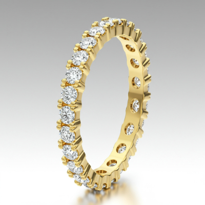 This 18KT yellow gold ring embodies timeless sophistication, perfect for stacking or wearing as a subtle statement piece. Fifteen dazzling VVS G-color round brilliant diamonds are meticulously set in a continuous line, catching the light with unparalleled radiance. Its slender profile and luxurious finish ensure comfortable, everyday wear. This ring is a celebration of enduring style and meticulous craftsmanship, making it an essential addition to any fine jewelry collection.