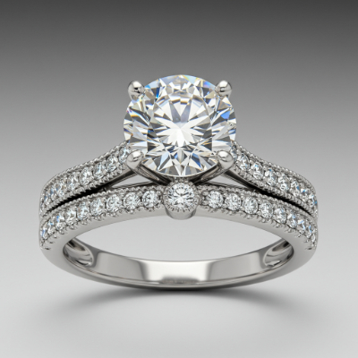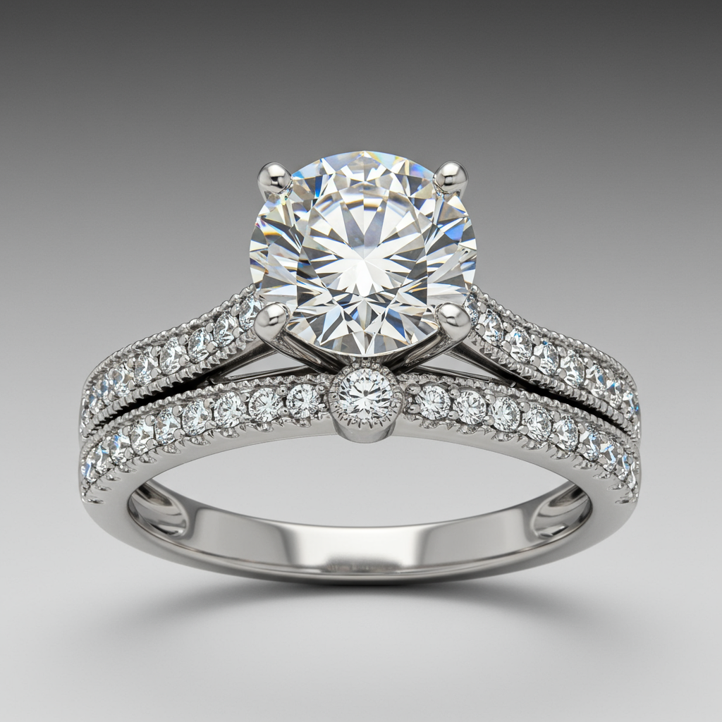 Capture timeless elegance with this exquisite engagement ring, inspired by the sophisticated style of Selena Gomez. Crafted meticulously in luxurious 18KT white gold, this piece centers around a brilliant round diamond of exceptional VVS clarity. The sleek, delicate band is adorned with micro-pave diamonds, adding a captivating sparkle that enhances the magnificent center stone. This ring is a true symbol of modern romance and enduring beauty, designed for those who appreciate understated glamour.