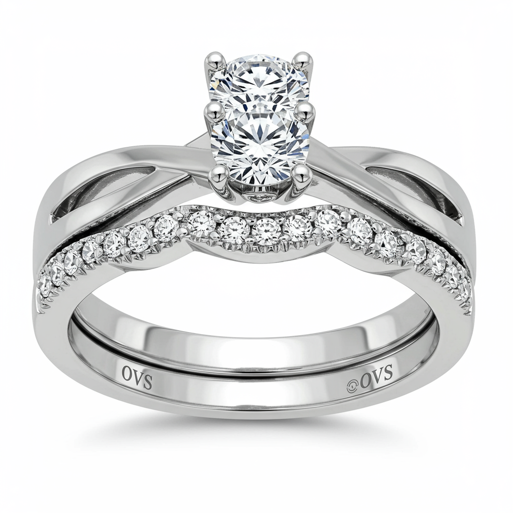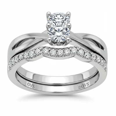 This exquisite wedding ring set features a dazzling solitaire engagement ring perfectly complemented by a contoured diamond wedding band. Crafted in radiant 18KT white gold, the set showcases a total of 1.30 carats of VVS clarity, G-H color diamonds. The central brilliant round diamond is highlighted by pave-set accents along the shanks, creating an unparalleled sparkle. Designed for the modern bride, this set symbolizes eternal commitment and enduring elegance, offering a flawless fit when worn together.