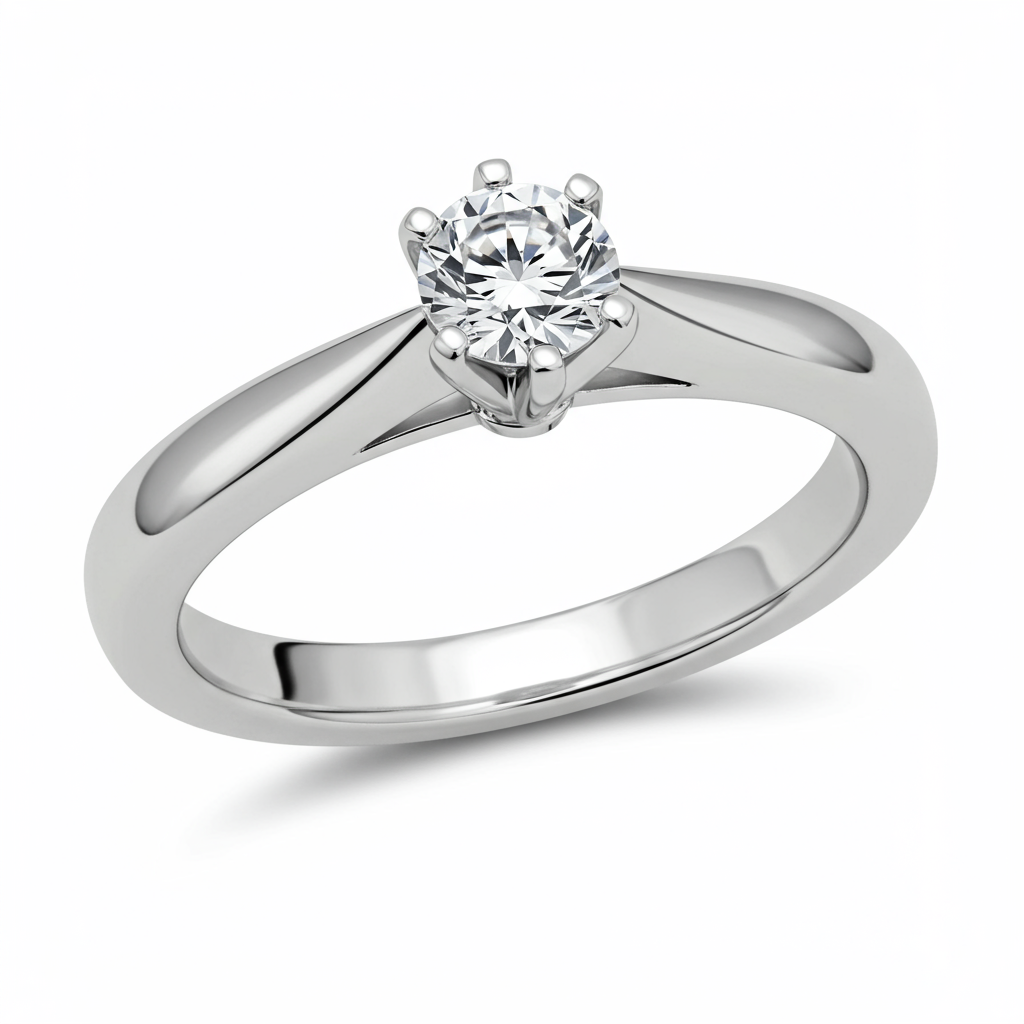 This conceptual sizing chart piece embodies precision and luxury, crafted in highly polished 18KT white gold. Designed to offer a true representation of fit, it features a single, perfectly cut VVS diamond for verification purposes. The classic band silhouette ensures comfort and accurate measurement for definitive sizing decisions. This piece serves as the ultimate benchmark for finding the ideal ring size while experiencing unparalleled quality.