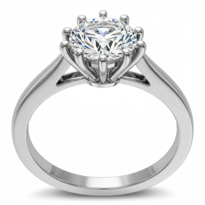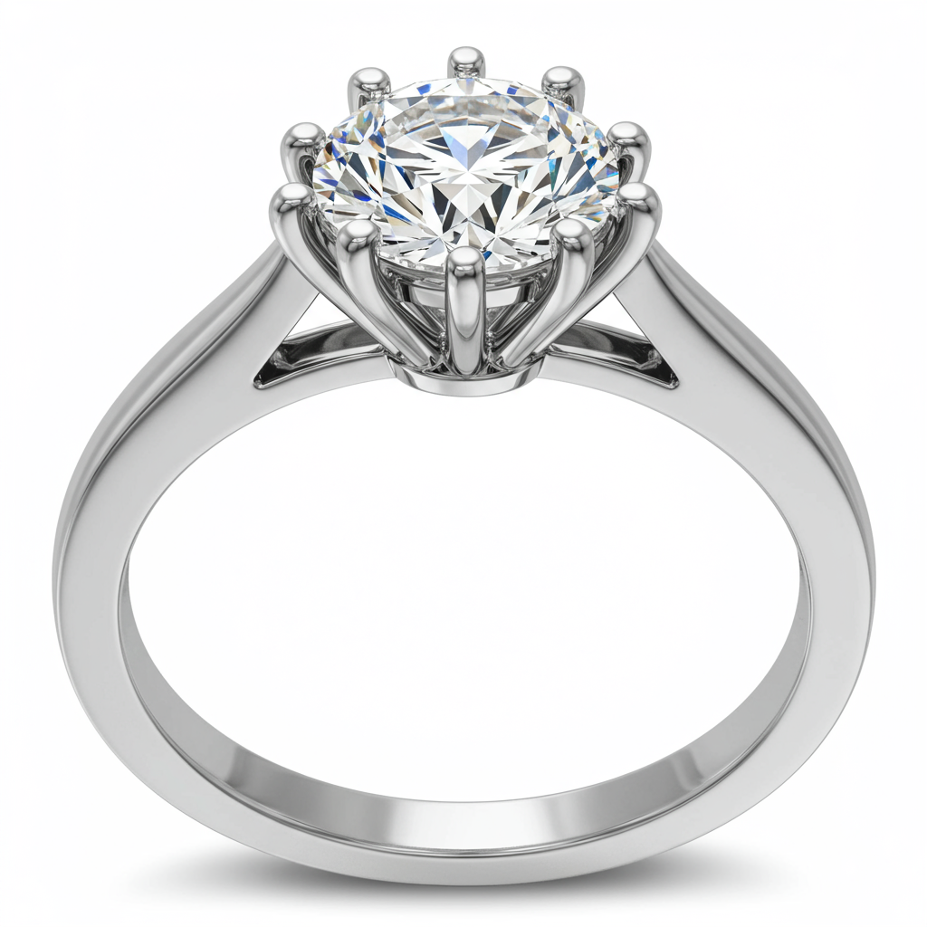The Solitaire Engagement Ring embodies timeless elegance and refined simplicity, crafted in lustrous 18KT white gold. Its sleek, polished band gently tapers, directing all focus toward the breathtaking center diamond. This classic six-prong setting elevates the stone, maximizing light return and brilliance from every angle. It is the definitive symbol of everlasting love, designed for generations to cherish.