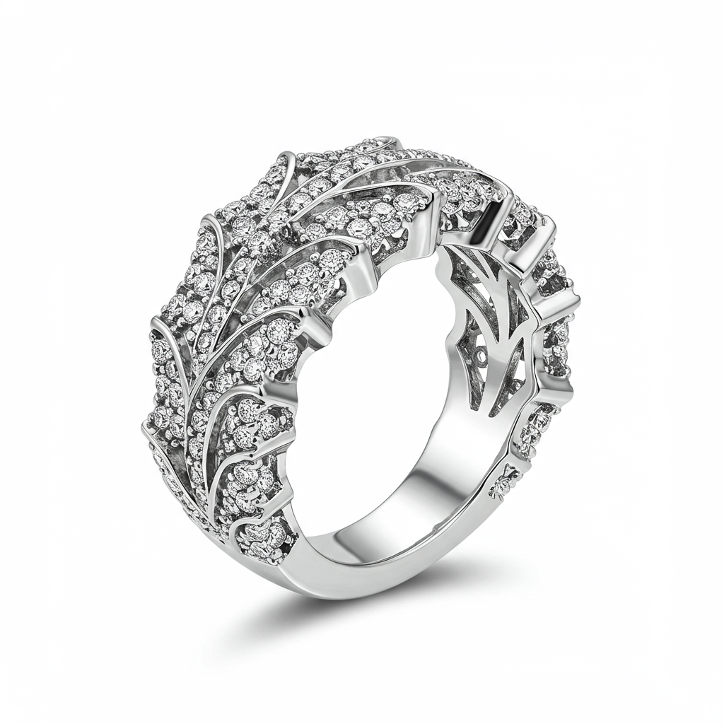 The Elden Ring Armor is a majestic statement piece, capturing the rugged elegance of fantasy warfare through haute couture jewelry. Masterfully crafted with articulated white gold segments, this ring is designed to contour the finger with bold, commanding presence. Its surface is intricately textured and blanketed in scintillating micro-pave diamonds, creating an unstoppable stream of light. This piece embodies strength and high luxury, perfect for the collector seeking truly unique wearable art.
