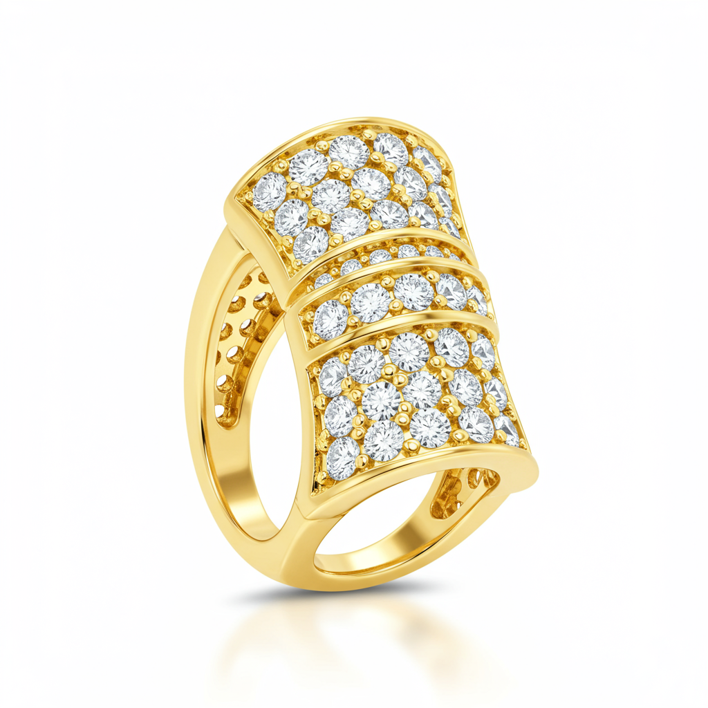 The Thumb Ring is a bold statement piece designed for ultimate comfort and presence. Crafted from luminous 18KT yellow gold, this wide band features a continuous line of micro-pave set diamonds, creating an unbroken stream of brilliance. Its substantial design rests perfectly on the thumb, symbolizing strength and individuality. This piece flawlessly blends modern luxury with enduring sophistication, making it an essential addition to any refined collection.