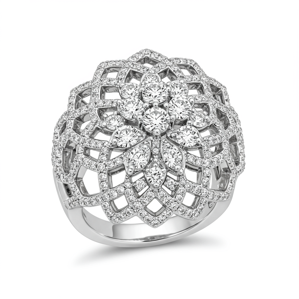 The Elden Ring Spells ring captures the mystic grandeur of forgotten lore, symbolizing power and arcane beauty. Crafted in brilliant 18KT white gold, this piece features a central geometric pattern surrounded by brilliant-cut diamonds that radiate outward like nascent magical energy. Its intricate detailing and high-polish finish ensure maximum light reflection, creating a truly spellbinding visual effect. This statement ring is designed for the wearer who commands attention and appreciates exceptional craftsmanship.