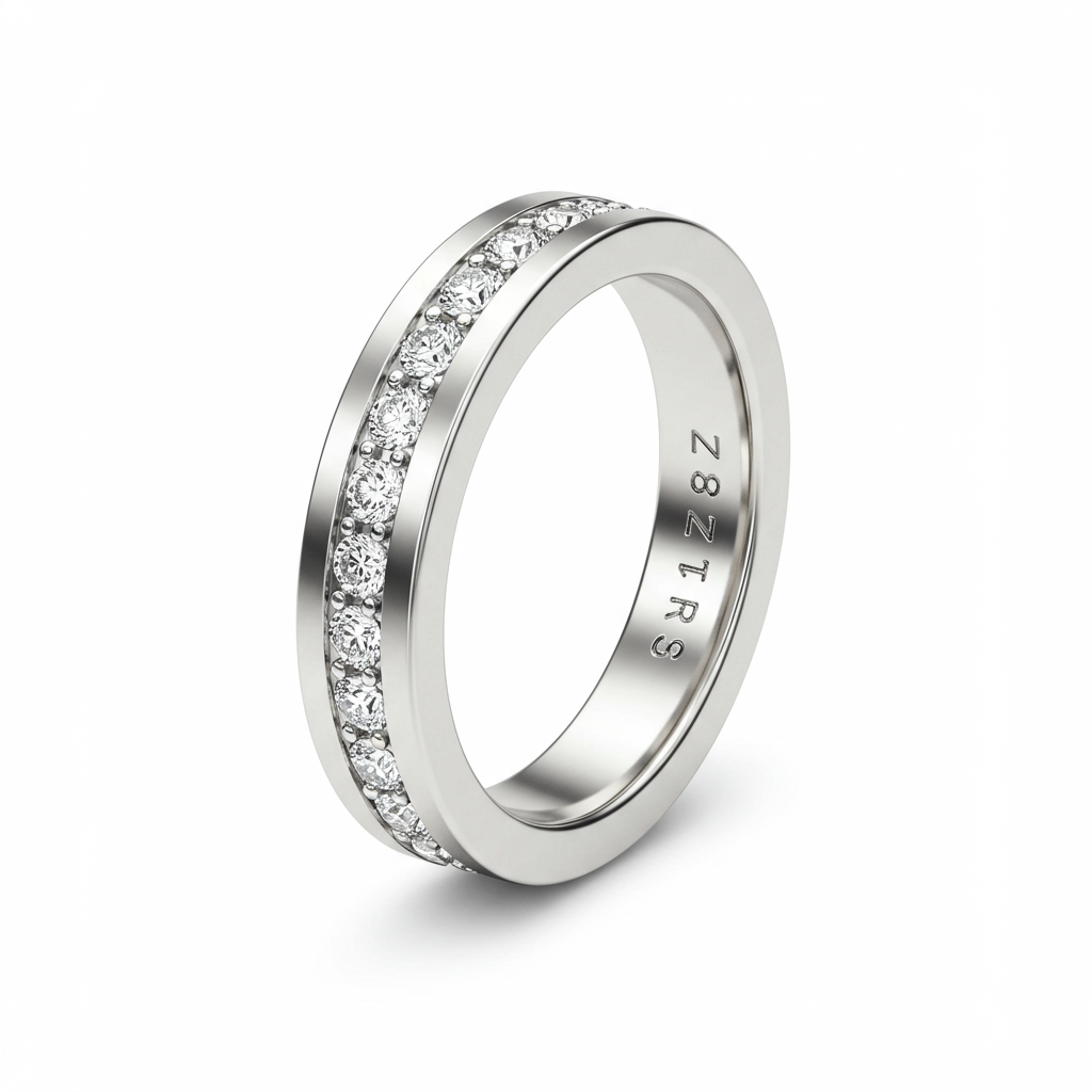 The JewelGravity Professional Ring Sizer embodies the marriage of precise functionality and luxury design. Crafted in gleaming 18KT White Gold, this essential measurement tool features meticulous calibrations etched with laser precision. Subtle accents of VVS diamonds mark the standard size increments, offering effortless readability and an unparalleled tactile experience. This sizer elevates the standard jeweler's utility into a signature statement piece of lasting quality and impeccable craftsmanship.