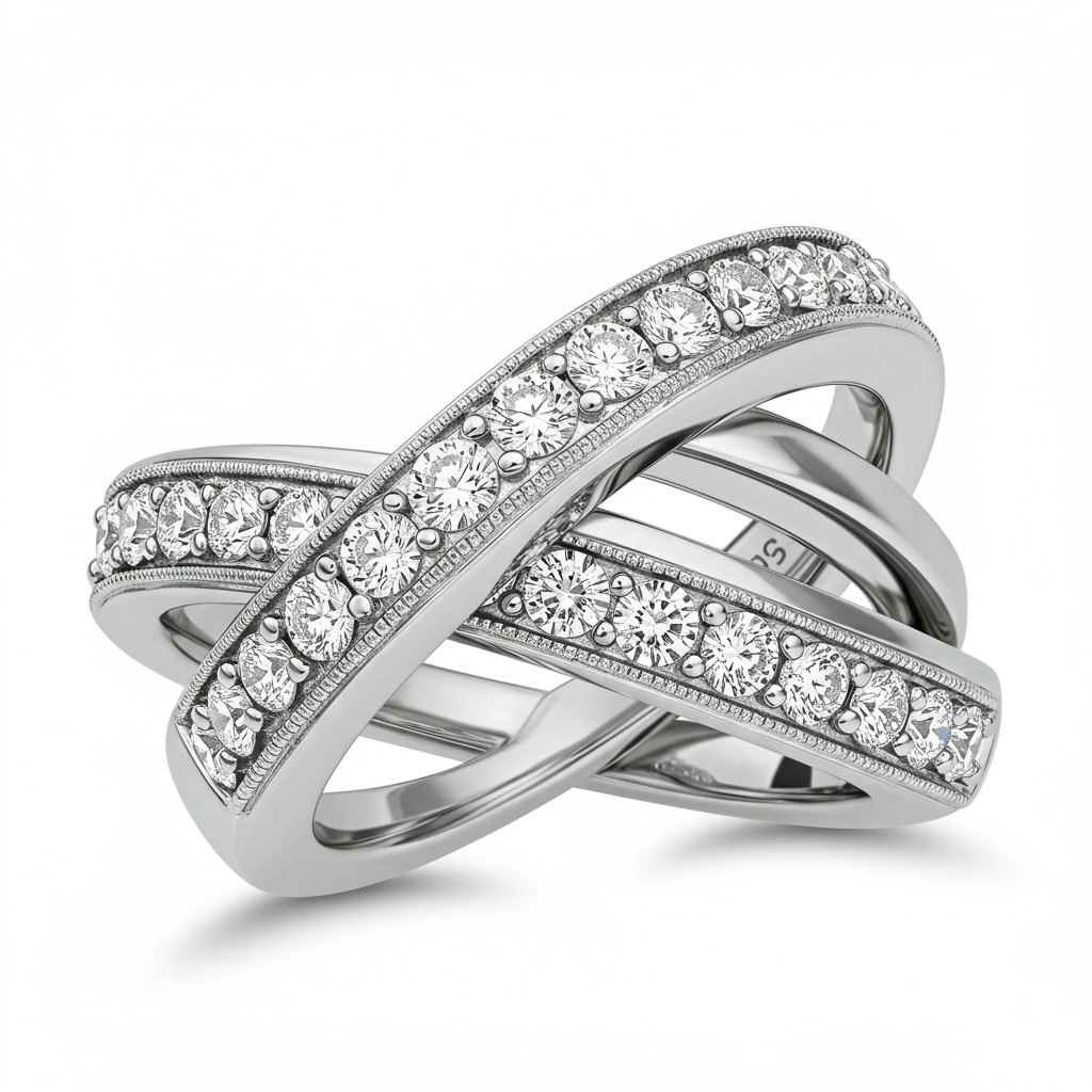 The Silver Rings collection presents a sophisticated duality, featuring two distinct bands elegantly linked into a single statement piece. Crafted from brilliant 18KT white gold, one band is meticulously paved with VVS clarity diamonds, offering incomparable scintillation. This design symbolizes everlasting connection, making it an exquisite choice for milestones or daily luxury wear. The polished surfaces and flawless setting ensure a breathtaking shine from every angle.