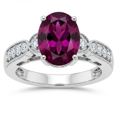 This exquisite birthstone ring, meticulously crafted in 18KT white gold, offers a personalized touch of luxury. It showcases a stunning oval-cut color stone, perfectly complemented by delicate settings of VVS quality accent diamonds that catch the light from every angle. The design provides a classic yet contemporary feel, making it an ideal choice for celebrating significant milestones or as a cherished heirloom. Experience the confluence of vibrant color and dazzling brilliance in this truly unique piece.