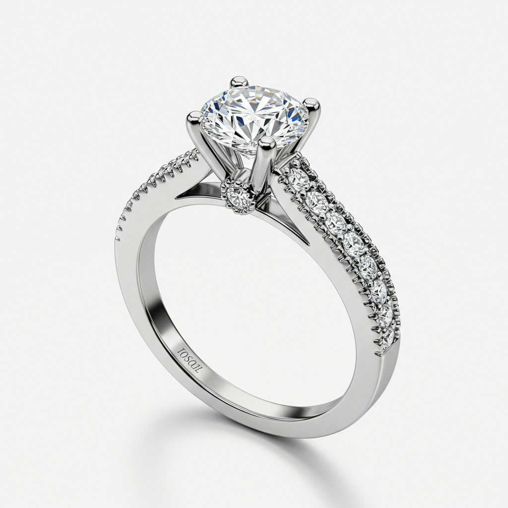 This stunning Solitaire Ring is the epitome of timeless elegance, designed to mark life's most significant milestones. Expertly crafted in 18KT white gold, the slender band draws all attention to the magnificent center stone. The brilliant round diamond is meticulously set to maximize light return, ensuring unparalleled sparkle and fire. It features delicate micro-pave accents down the shank for added scintillation. This piece is the perfect foundation for starting your journey, making it worthy of a lifetime of wear.