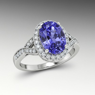 Experience the breathtaking depth of this exceptional tanzanite ring, featuring a majestic 2.5-carat oval centerpiece set in luminous 18KT white gold. The central Tanzanite is framed by a brilliant halo and accented by VVS round diamonds meticulously set on the band, maximizing sparkle and brilliance. This design perfectly balances classic elegance with modern structure, making it a powerful statement piece for any sophisticated collection. It represents unparalleled artistry and timeless luxury, ideal for celebrating milestones and cherished gifts. The rich violet-blue hue of the tanzanite captivates the eye.