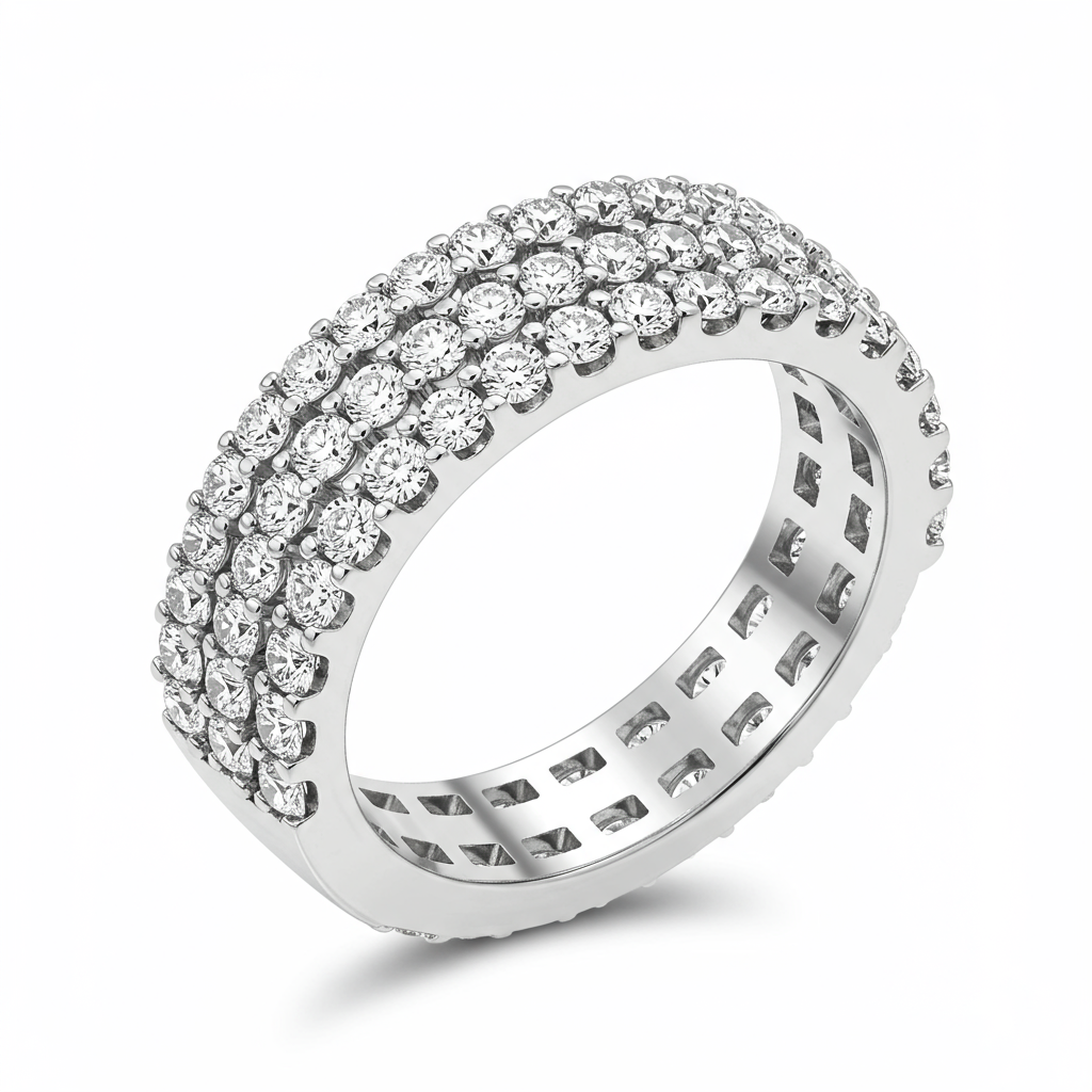 The 'is elden ring cross platform' eternity band epitomizes modern brilliance, meticulously crafted in radiant 18KT white gold. This striking piece features three continuous rows of micro-set VVS round brilliant diamonds, maximizing light performance from every angle. The precision micro-pave setting minimizes metal visibility, creating an uninterrupted river of fire and scintillation. Designed for significant milestones, this band serves as an extraordinary wedding band or a luxurious statement piece.