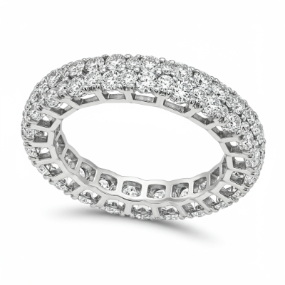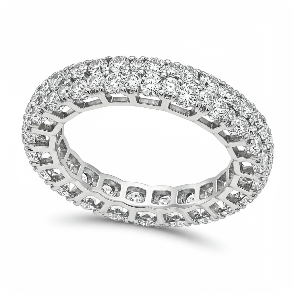 This 'ring sizing' style eternity band epitomizes understated luxury and technical precision. Set in lustrous 18KT white gold, the continuous row of perfectly matched round diamonds creates an uninterrupted circle of brilliance. Designed for comfort and stacking versatility, this essential piece ensures flawless fit while delivering exceptional sparkle. It serves equally well as a foundation for a bridal stack or a refined standalone statement of perpetual elegance.