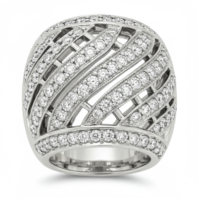 The Elden Ring Seamless Coop band represents eternal unity and intricate design, meticulously crafted in radiant 18KT white gold. Its sculptural form features interlocking, polished channels that flow endlessly around the finger, embodying the concept of collaboration. Pave-set VVS diamonds are strategically placed within the deeper channels, creating a subtle yet profound sparkle that catches light from every angle. This exquisite piece is a modern heirloom, designed for those who appreciate both powerful structure and delicate brilliance.