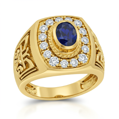 The quintessential heritage piece, this class ring embodies academic achievement and lifelong connection. Crafted in substantial 18KT yellow gold, the design features intricate side detailing representing the alma mater's crest and a prominent central bezel-set gemstone. The shoulders are accented with flawless VVS diamonds, adding a subtle yet powerful sparkle. This ring is a personalized testament to enduring legacy and accomplishment, designed to be passed down through generations.