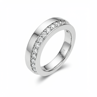 The Oura Best Buy ring captures modern elegance through its clean lines and minimalist profile. Crafted in luxurious 18KT white gold, this comfort-fit band is designed for seamless daily wear. A subtle row of dazzling VVS G-color diamonds is expertly set, providing continuous sparkle without unnecessary bulk. This piece represents the perfect marriage of contemporary style and timeless diamond brilliance, making it an essential addition to any sophisticated collection.