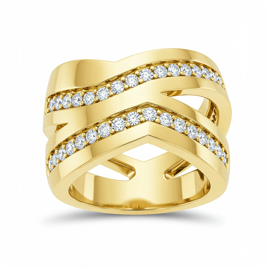The 'gucci ring' offers a bold, architectural statement, rendered in rich 18KT Yellow Gold. Its structure features distinct, interlocking geometric motifs inspired by high fashion heritage. This piece is meticulously detailed, showcasing exceptional craftsmanship and a high-polish, contemporary finish. Perfect for the collector seeking everyday luxury and unmistakable style.