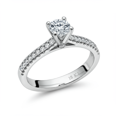 This exquisite lab diamond engagement ring captures eternal devotion with its brilliant center stone. Set in lustrous 18KT white gold, the stunning VVS solitaire diamond is elevated by a delicate band adorned with complementary pave accents. The precision setting maximizes light return, ensuring unparalleled brilliance from every angle. This timeless design combines classic elegance with sustainable luxury, making it the perfect symbol of a lasting promise.