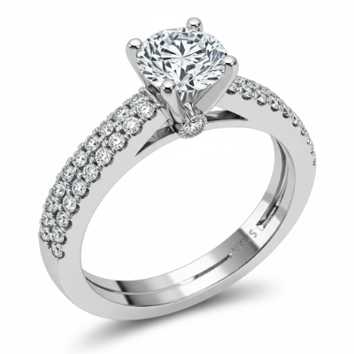 This breathtaking engagement ring showcases the brilliance of sustainable luxury, centered by a magnificent certified lab-grown diamond. Set in luxurious 18KT white gold, the sophisticated four-prong setting elevates the stone to maximize light return and sparkle. Delicate pave-set accents adorn the slender band, adding an ethereal shimmer that complements the central gem. This timeless design symbolizes enduring commitment and modern elegance, perfect for a modern proposal.