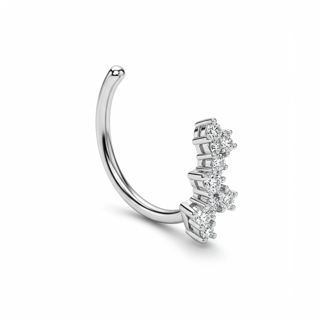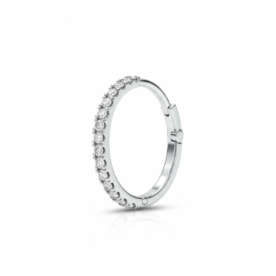 The Diamond Pavé Septum Ring embodies modern elegance and delicate rebellion, crafted for the discerning collector of fine body jewelry. Set in radiant 18KT white gold, this clicker style features a continuous row of micro-pavé diamonds along its curvature. The secure hinge mechanism ensures effortless wear and removal while maintaining a seamless, high-fashion aesthetic. This luxurious piece offers unparalleled brilliance, perfect for those seeking sophisticated everyday sparkle.