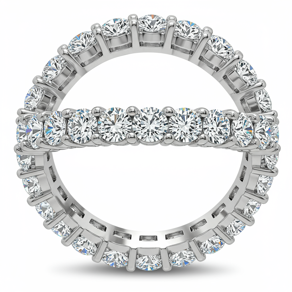 Celebrate enduring commitment with this exquisite Anniversary Eternity Band, meticulously crafted in luxurious 18KT white gold. A continuous loop of flawless VVS round brilliant diamonds symbolizes everlasting love and devotion. Each diamond is secured in a delicate shared-prong setting, maximizing light return and achieving breathtaking sparkle from every angle. This timeless piece serves as a magnificent stackable ring or a powerful standalone statement of milestone achievement.