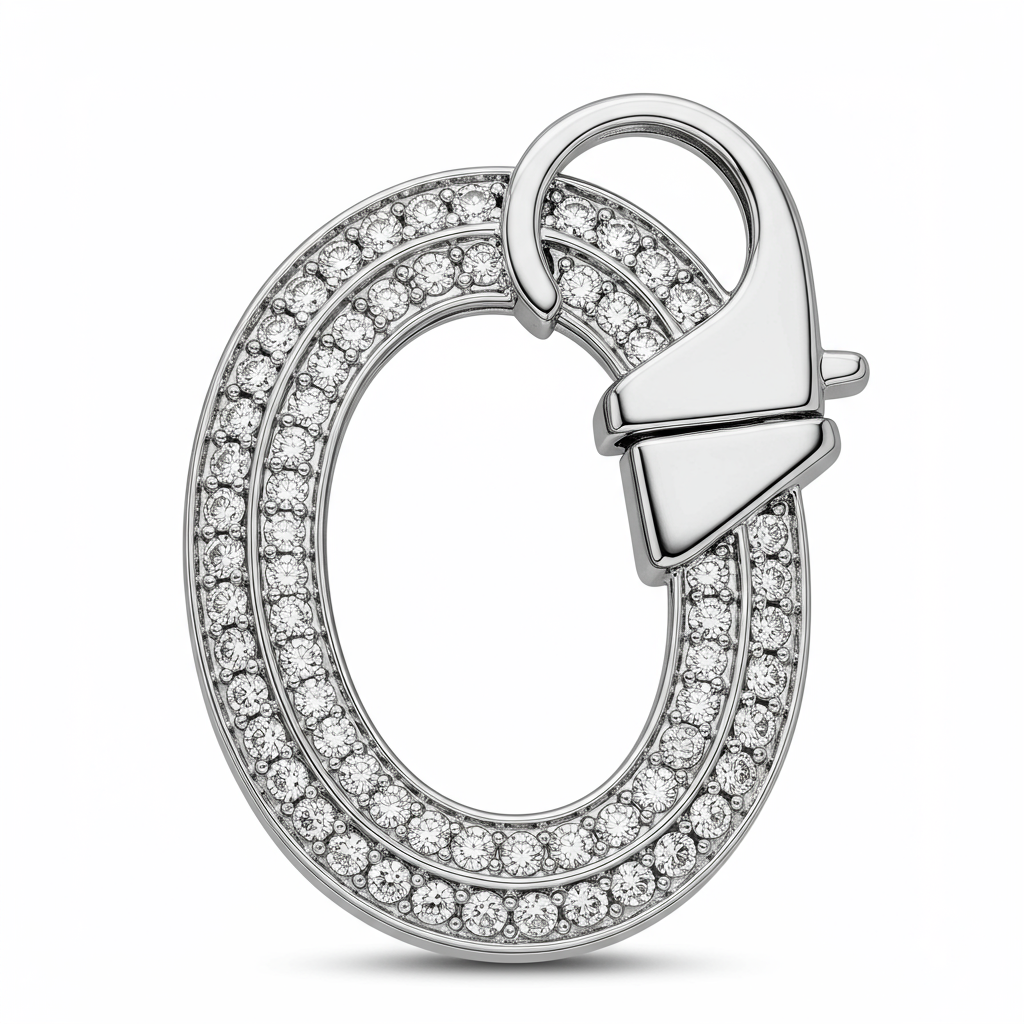 The JewelGravity diamond key ring transforms an everyday essential into an object of sophisticated luxury. Crafted in polished 18KT white gold, this substantial accessory features a minimalist, yet robust design built for daily utility. A central channel of meticulously set VVS G diamonds adds an exceptional, continuous line of brilliant sparkle, elevating its status far beyond standard utility items. This key holder is the perfect fusion of utility and opulent design, destined to become a cherished heirloom.