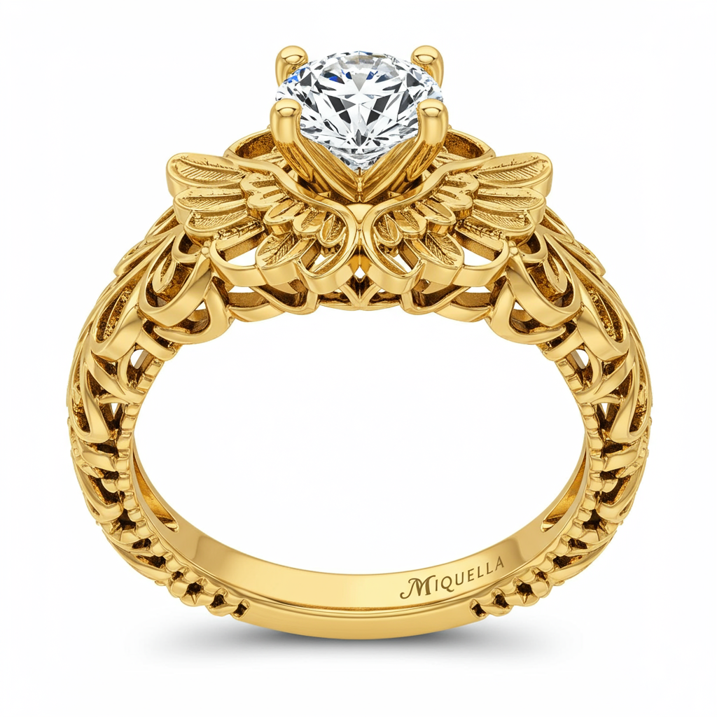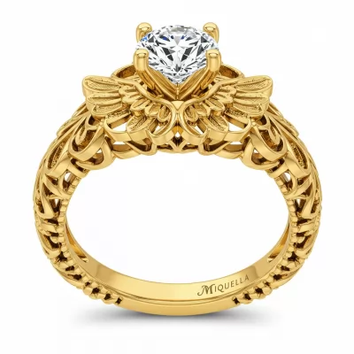 The Miquella Elden Ring is a masterpiece of celestial geometry, capturing the ethereal beauty and sorrowful grace of its namesake. Crafted in radiant 18KT yellow gold, the design features intricate filigree work reminiscent of delicate wings, embracing a brilliant central diamond. This striking statement piece is elevated by flanking rows of micro-pave diamonds, lending an unmatched brilliance and textural depth. It serves as a wearable symbol of elegance, power, and timeless mystique for the discerning collector. Its commanding presence ensures it is noticed from every angle.