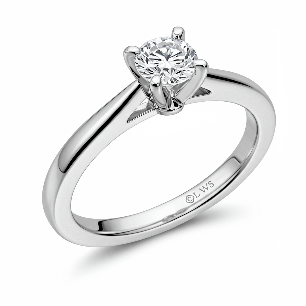 This exquisite promise ring features a brilliant round diamond held securely by elegant claw prongs, symbolizing everlasting commitment. Crafted in lustrous 18KT white gold, the slender band enhances the diamond's fire and brilliance. Its classic, refined aesthetic makes it the perfect token of future promises and unwavering devotion. This timeless design combines high-quality materials with exceptional craftsmanship, ensuring enduring beauty.