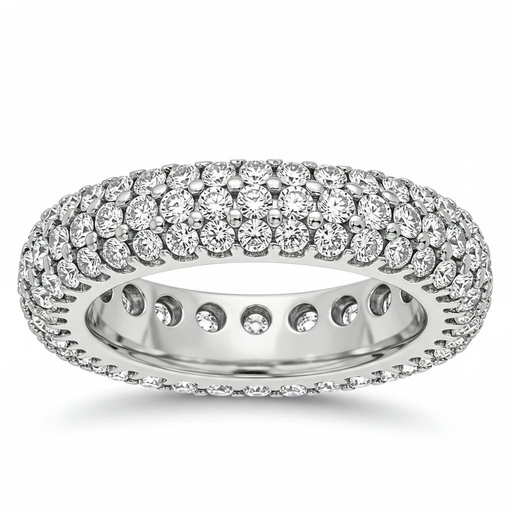 The woman married ring is an emblem of eternal commitment, crafted meticulously in luminous 18KT white gold. This classic wedding band features a continuous line of micro-pave set, brilliant-cut diamonds that maximize sparkle from every angle. Its delicate profile ensures comfortable wear while offering spectacular brilliance and luxurious weight. Designed for the modern bride, this ring provides timeless elegance suitable for daily life and lasting memory.
