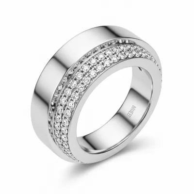 This revolutionary design fuses the sleek, minimalist aesthetics of modern wearable technology with the timeless luxury of fine jewelry. Crafted in lustrous 18KT white gold, the subtle, geometric profile provides comfortable all-day wear. The band is meticulously detailed with a micro-pave setting of brilliant-cut diamonds, adding a captivating sparkle that elevates its futuristic form. It stands as a testament to the convergence of innovation and exquisite craftsmanship.