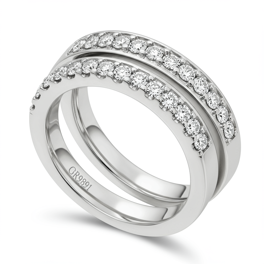 The 'wedding rings wedding' set symbolizes eternal commitment, featuring two perfectly matched 18KT white gold bands. The diamond-adorned band features a delicate line of brilliant VVS round diamonds set in a secure channel setting. Crafted for comfort and enduring beauty, these rings seamlessly nestle together, representing a lifetime of shared moments. This sophisticated pairing offers unmatched brilliance and timeless elegance, making it the perfect choice for your most special commitment.