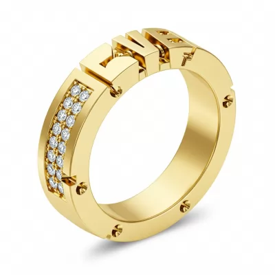 The Cartier Love Ring is a timeless testament to enduring affection, defined by its signature screw motifs symbolizing unbreakable commitment. Crafted in luxurious 18KT yellow gold, this iconic band offers a sleek, minimalist profile perfect for stacking or wearing alone. The design features finely set VVS round diamonds, adding subtle sparkle to the classic structure. Its polished finish reflects light beautifully, making it an essential piece of high-end, modern fine jewelry that represents everlasting devotion.